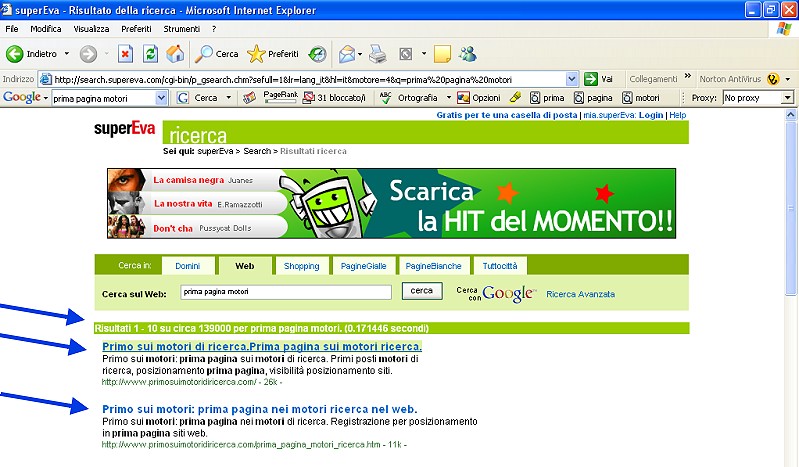 Per il posizionamento su google o arianna e tiscali (che utilizzano il pagerank) è indispensabile l'inserimento in directory (tipo Yahoo e dmoz) e siti con un alto pagerank.